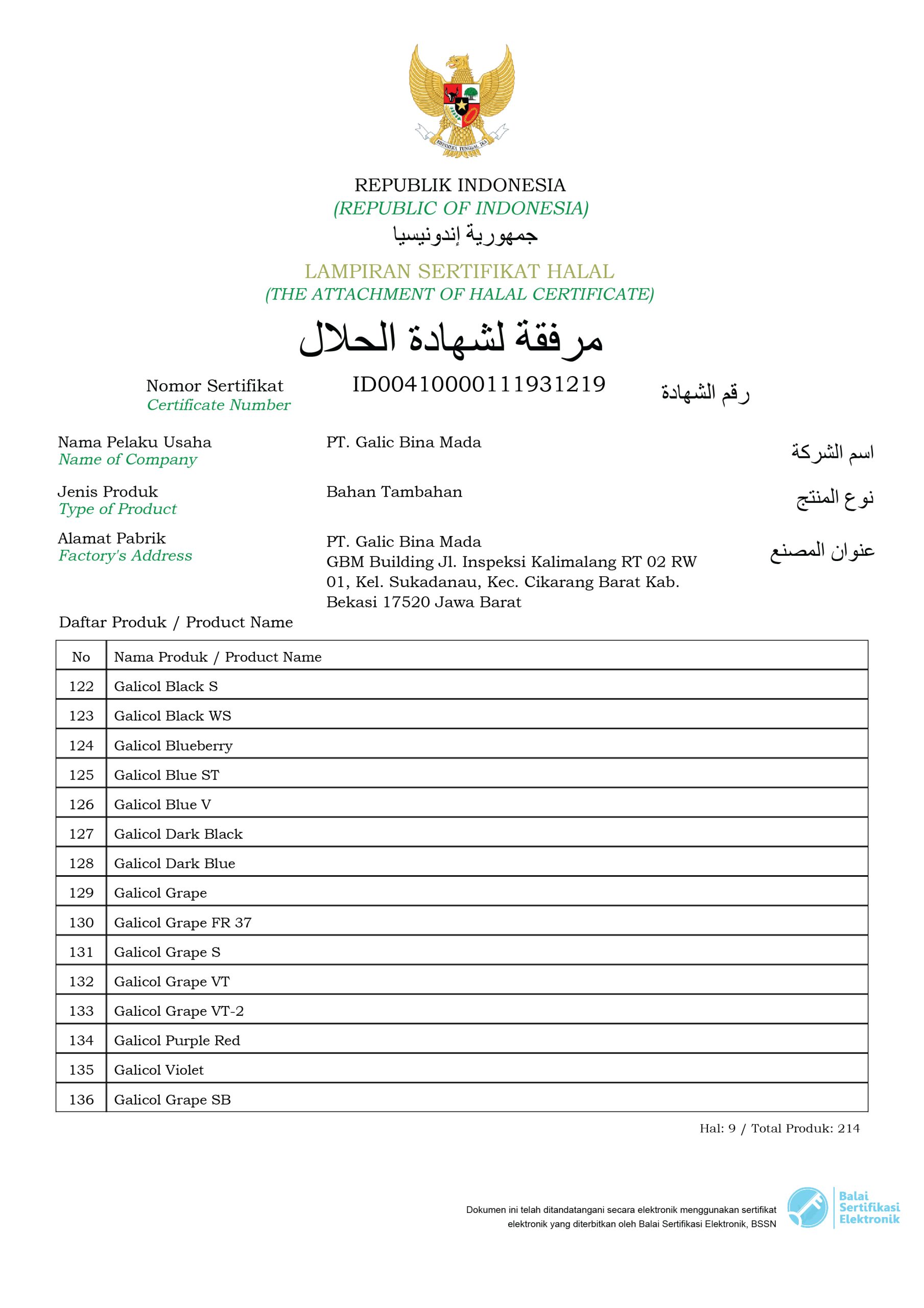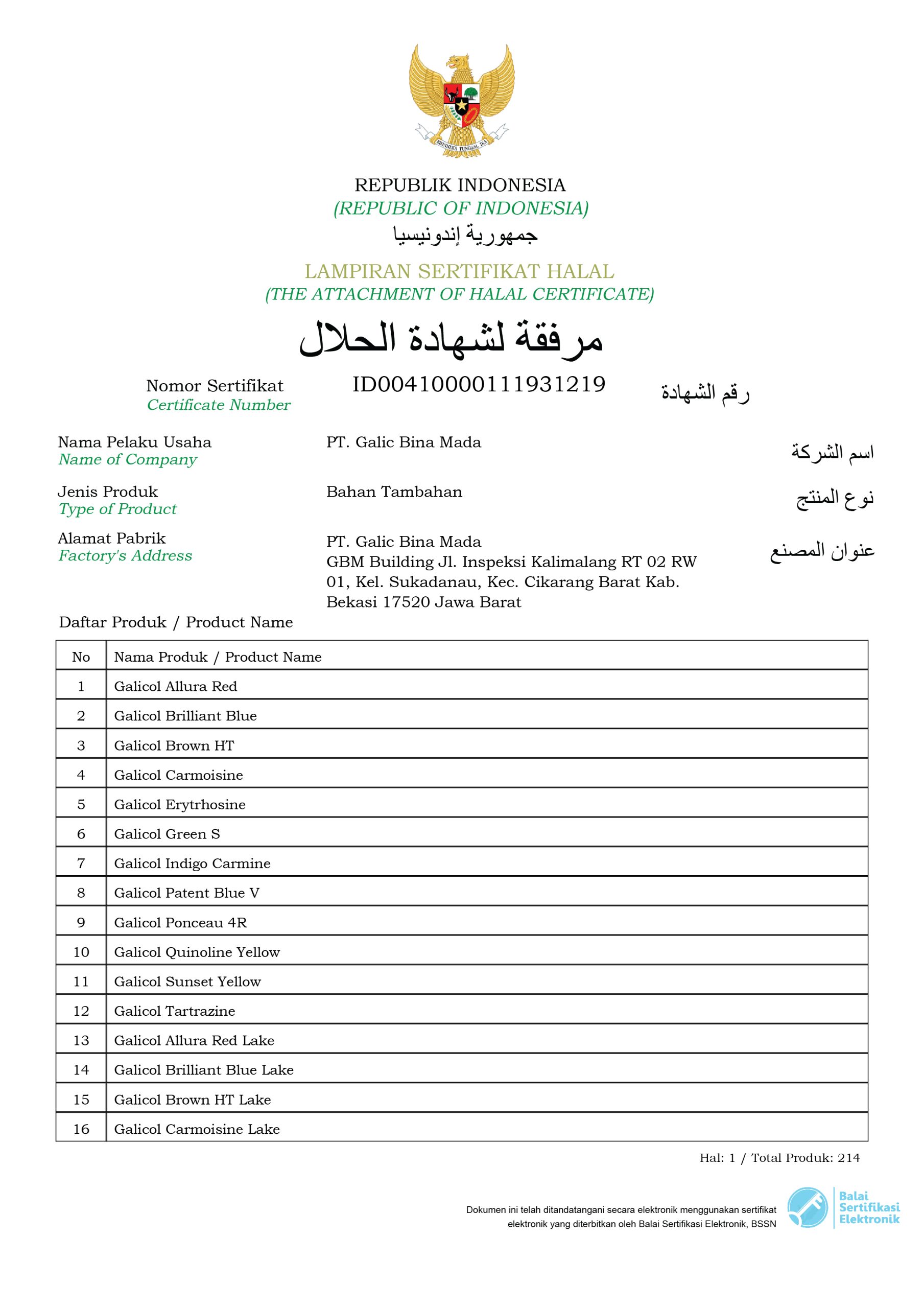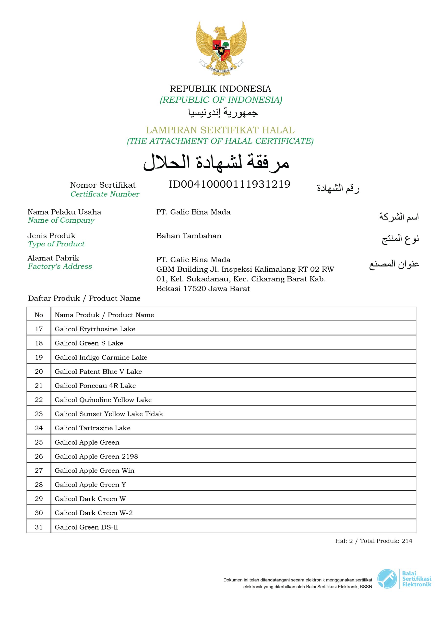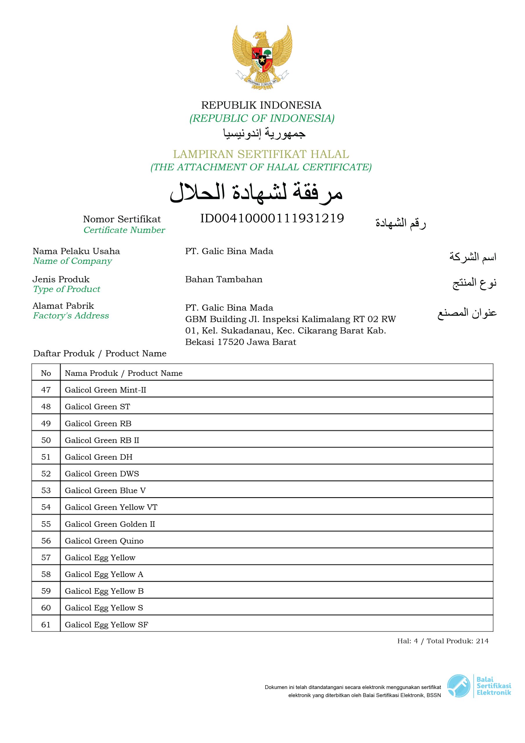Halal Certificate (Galicol Products)