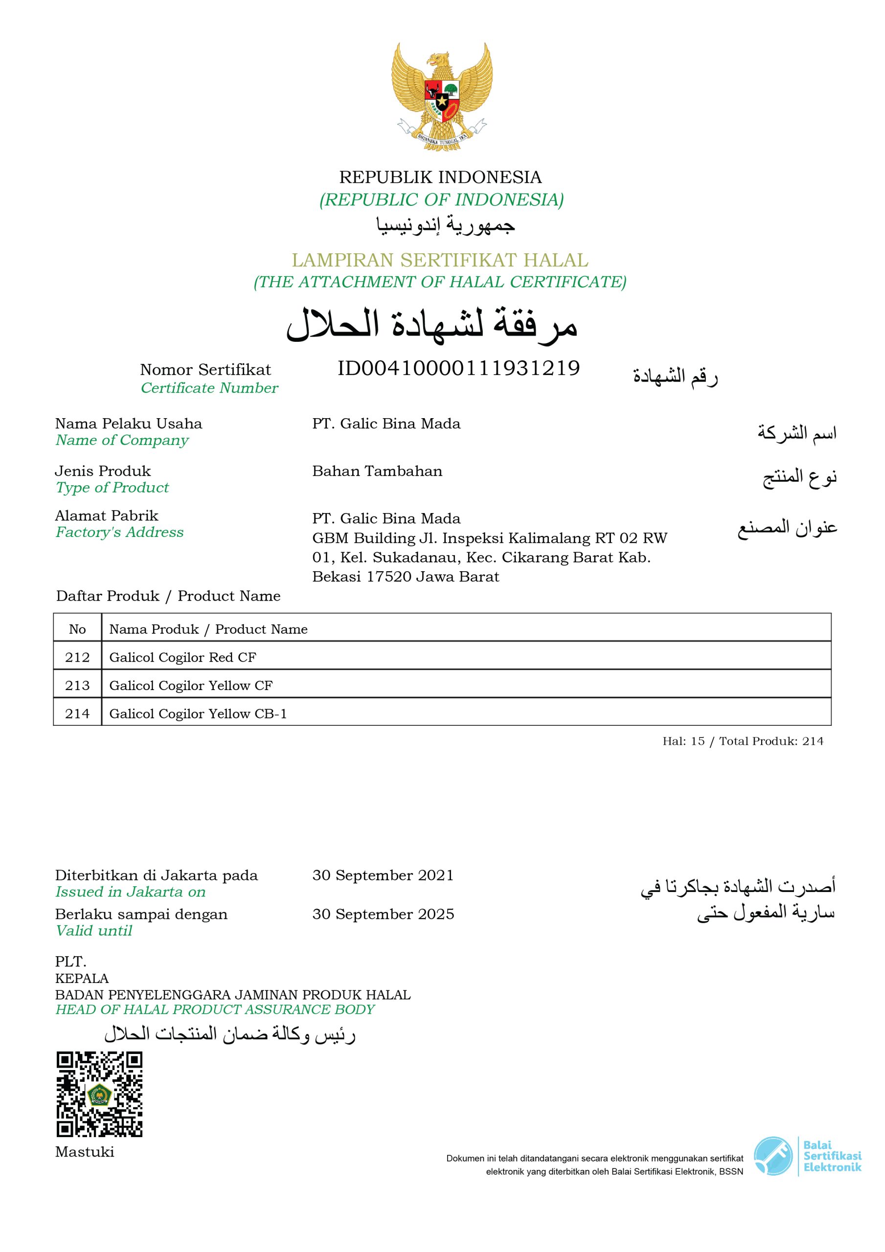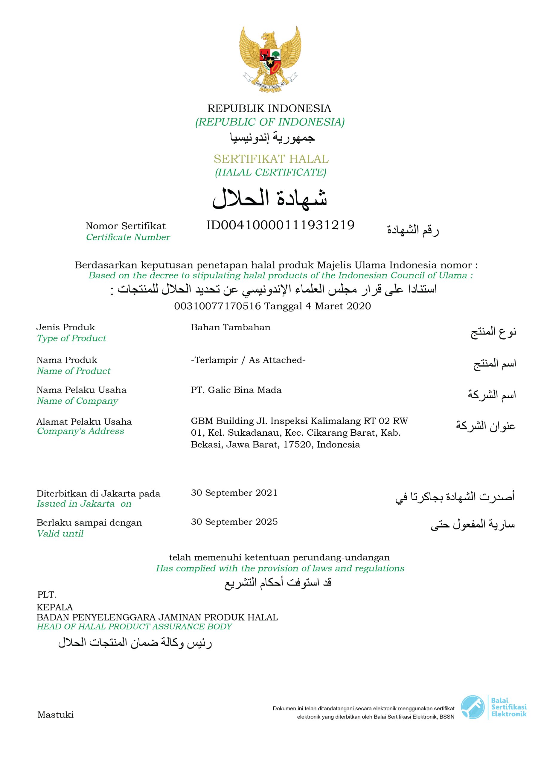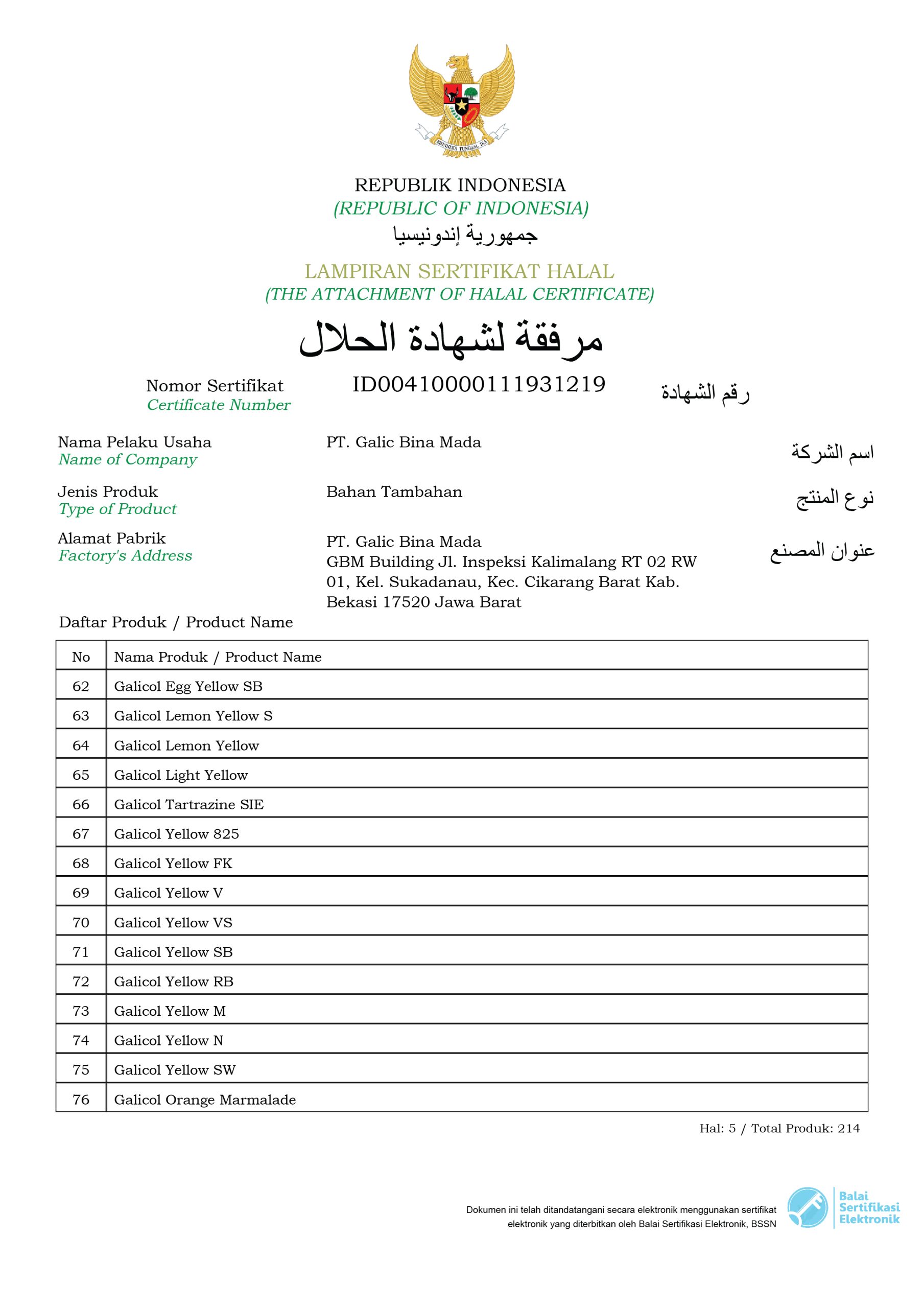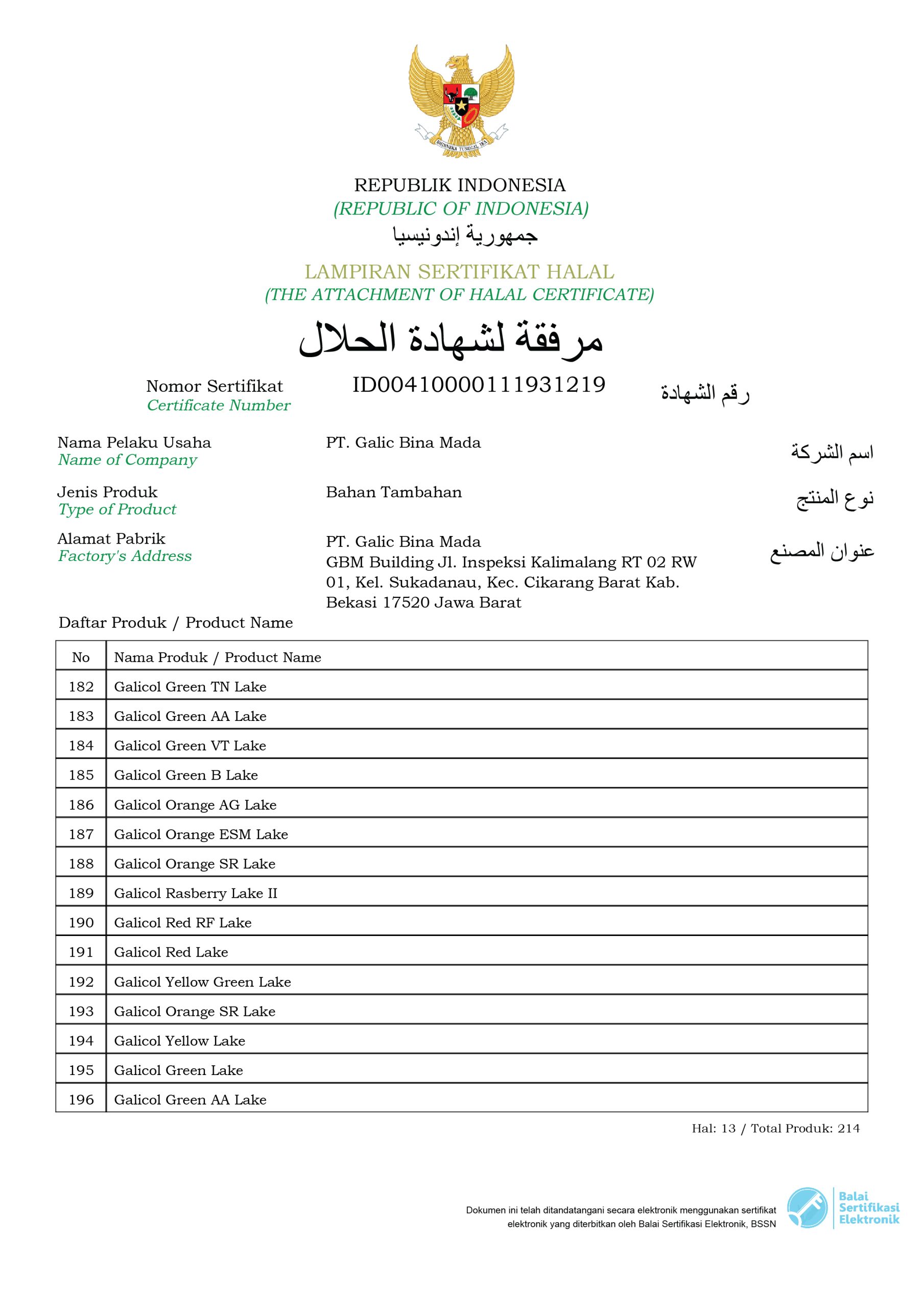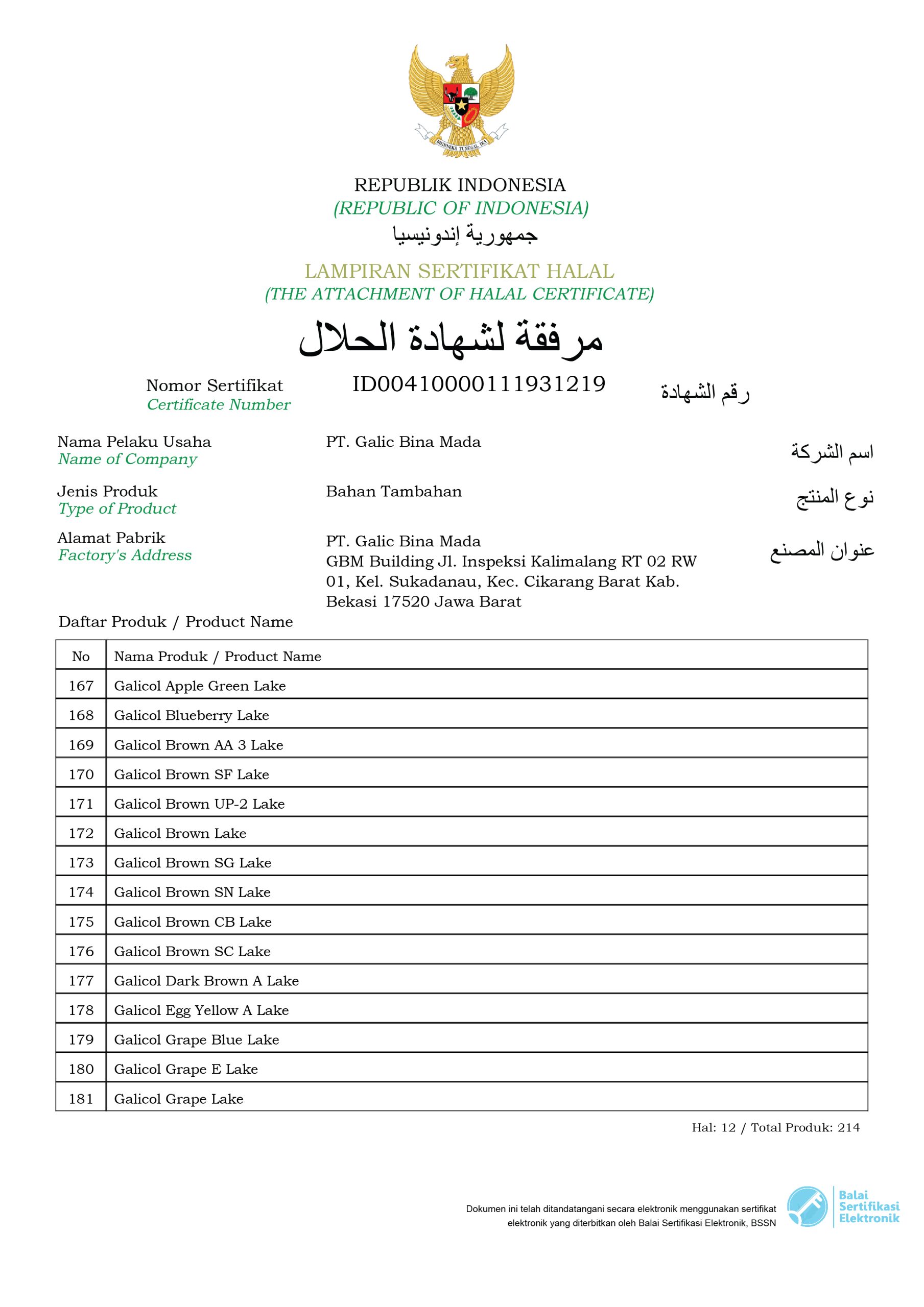 Halal Certificate (Galicol Products)